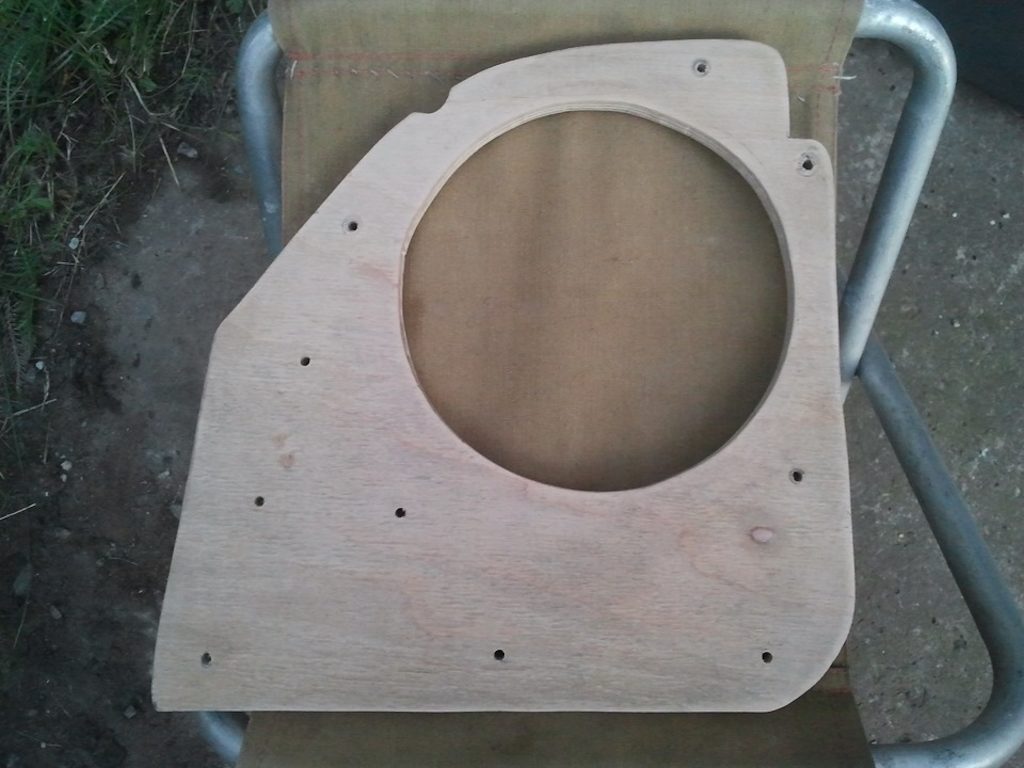 - Выпилите из фанеры подходящей толщины заготовки, вырежьте в них отверстия под динамики.