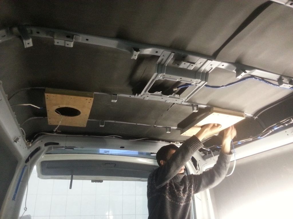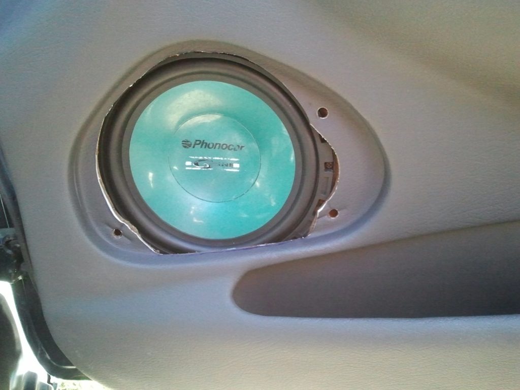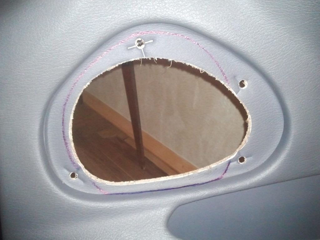 Отверстия под динамики вырезают в обшивке после установки подиумов и примерки