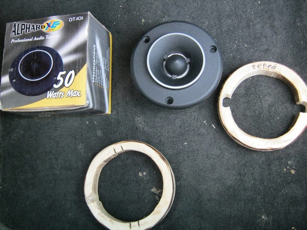 - Вырежьте из фанеры кольца по размеру динамиков.