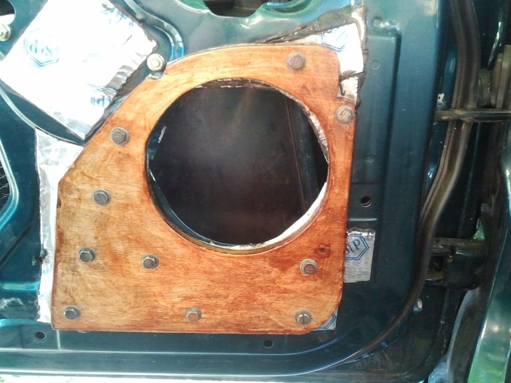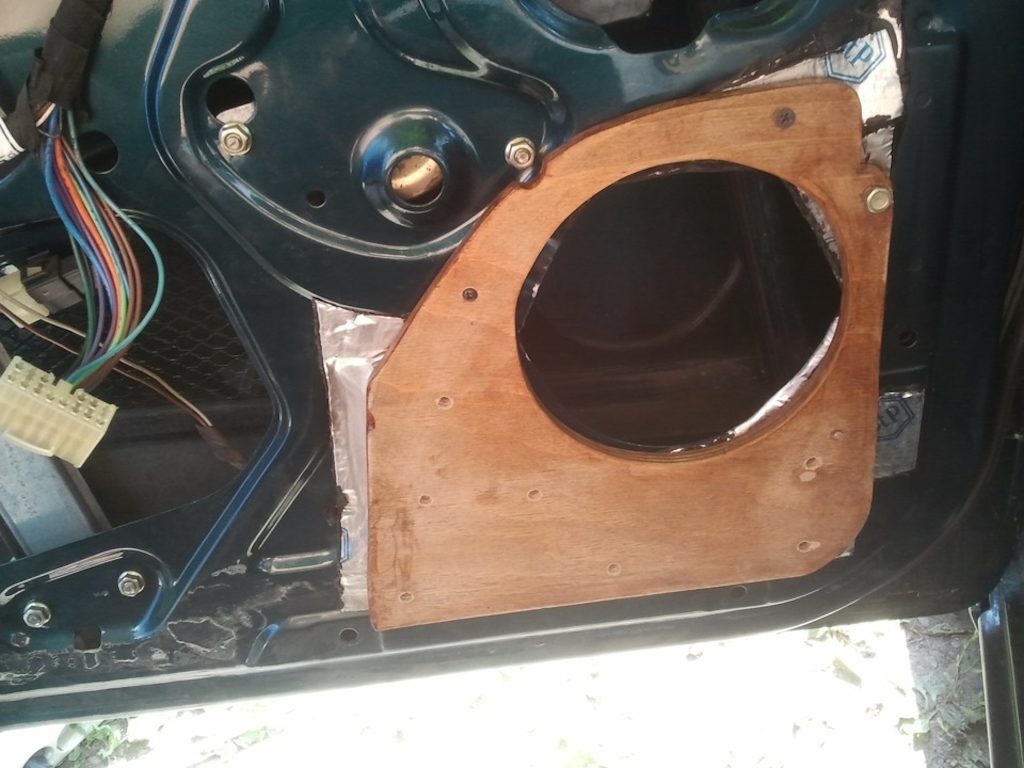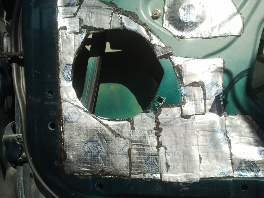 - Снимите обивку (карту) двери. Определите оптимальное место установки подиума.