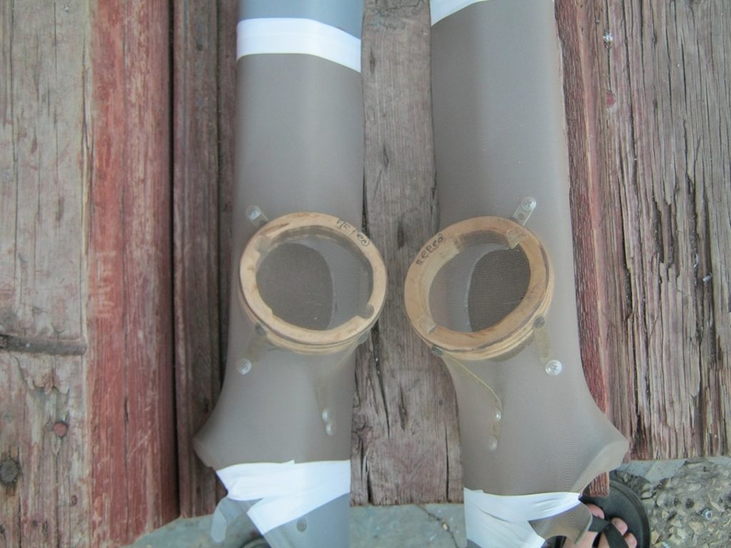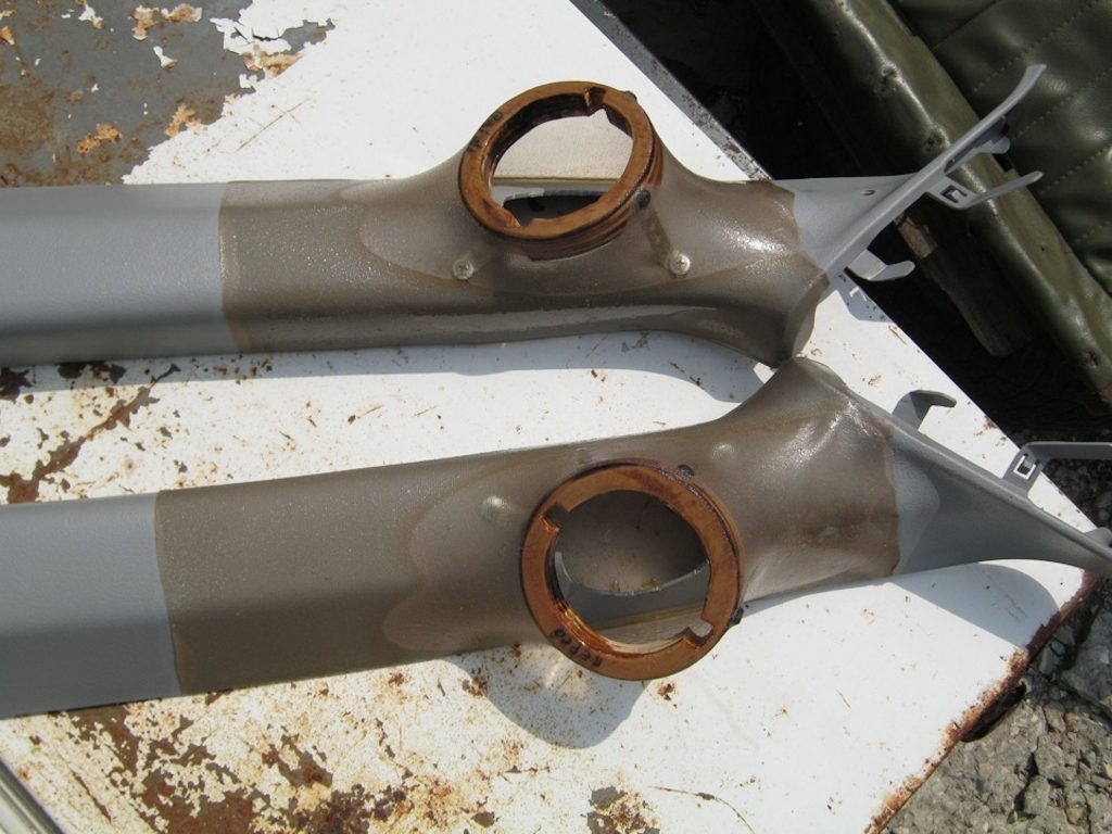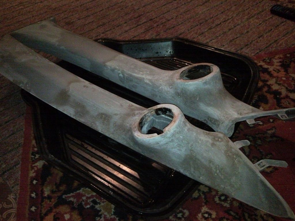 Панели обшивки стоек, подготовленные к нанесению эпоксидной смолы